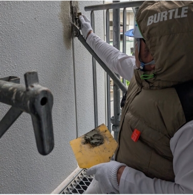鉄部錆止めと外壁補修の様子です!